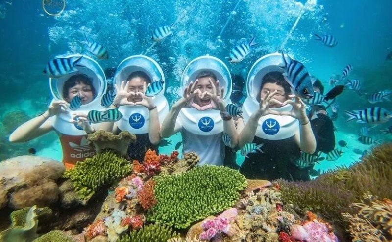 Sau thời gian tập huấn sử dụng dụng cụ lặn biển xong thì du khách sẽ được hòa mình vào với thế giới đại dương, tận mắt chiêm ngưỡng những đàn cá, những con cầu gai, những con sao biển gai và những cụm san hô đầy màu sắc tuyệt đẹp. Đây là một trong những trải nghiệm thú vị nhất trong tour Ninh Chữ Vĩnh Hy 2 ngày 1 đêm.